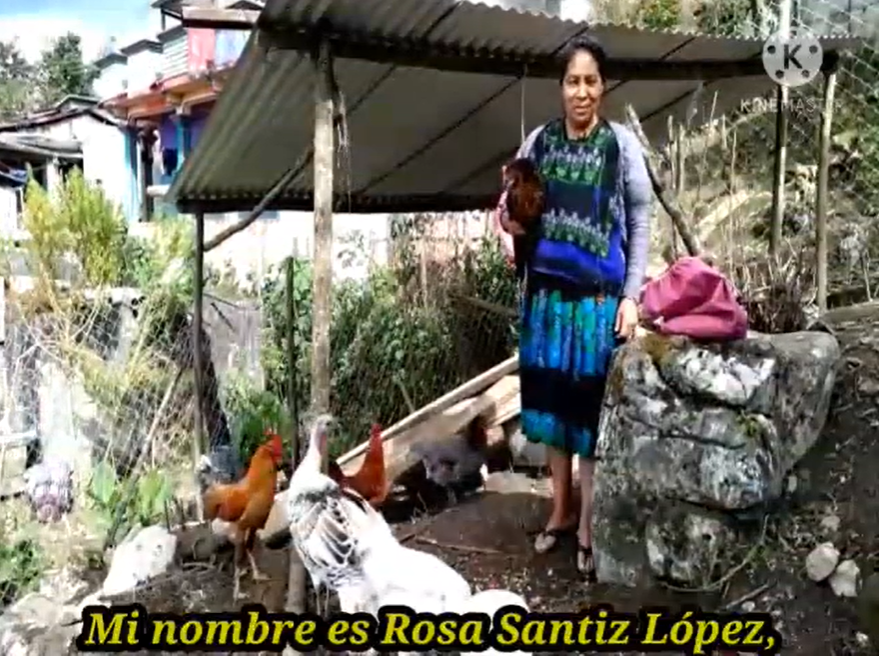 “My name is Rosa Santiz Lopez, and I want to tell you about our poultry and netting Project. Before the Project, predatory animals ate a lot of our chickens, so much that we didn’t really get any benefit from keeping them. Thanks to the netting and poultry house management techniques we learned, now our poultry birds grow well and are no longer eaten by wild animals. They no longer die. Now we have the full benefit of our efforts because we not only chicken and eggs, but we eat them too.